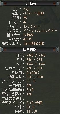 ようやくLv42です。逃げ出した時がLv41の60%くらいだったと思います。