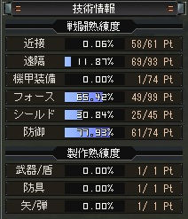 絶望的な経験値効率だったので勝手に熟練は上がっています。(Lv41時点で)近接カンストとか実に私らしい。