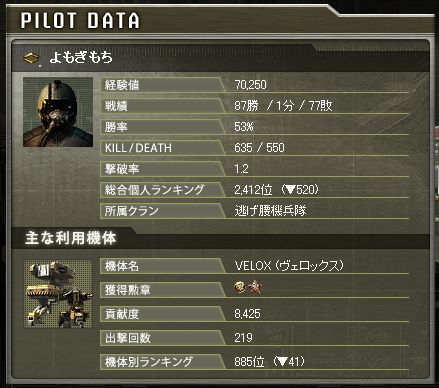 所属クラン:逃げ腰機兵隊