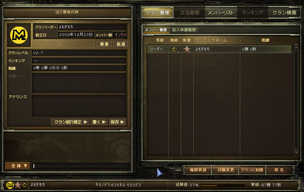 そう、クラン設立条件が整いました。んで早速逃げ腰魂を注入(何