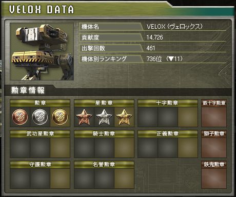 使用機体は相変わらず整備型のヴェロックスがメインです。