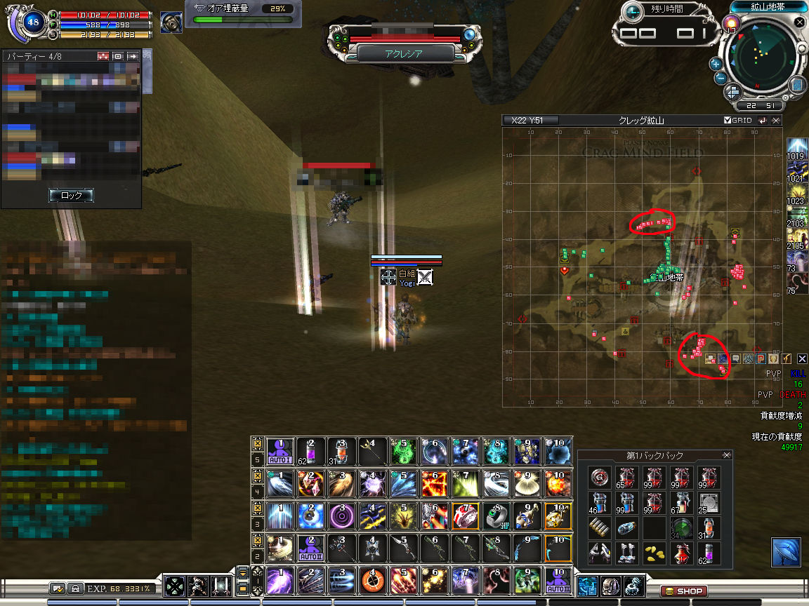 このまま鉱山ワープでも使って帰っても良かったのですが、せっかく一般さんに遭遇したのでPVPを。挑発エモをしたら乗ってきてくれました。